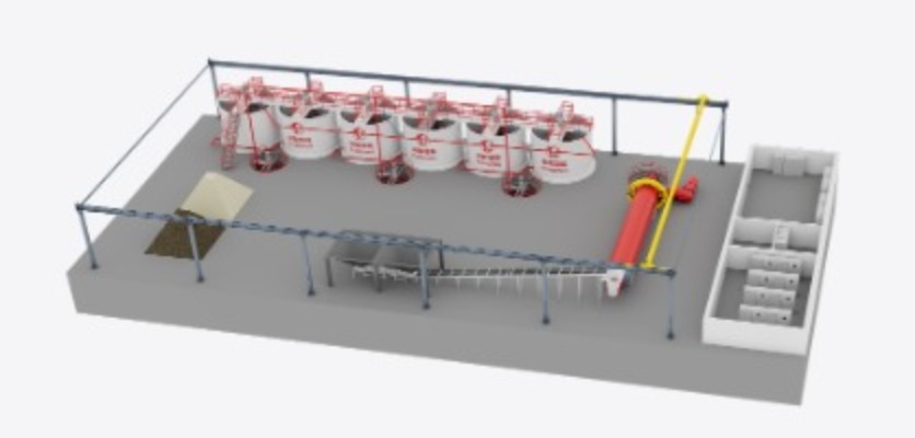 Karıştırma ve toplama sistemi: Bu, hammaddeleri depolamak için silolar, hassas tartım için ölçekler ve bulamaç yaratmak için büyük kapasiteli bir karıştırıcı içerir.