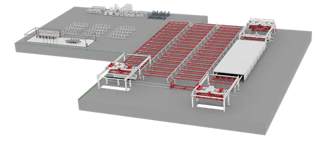 Yatay kesme makinesi: Kesme arabası boşluğu yatay kesme makinesinin konumuna taşıdığında, yatay kesme makinesi çalışmaya başlar. Boyuna kesme makinesine benzer şekilde, yatay kesme makinesi de birden fazla bıçakla donatılmıştır ve aynı anda birden fazla boşluk kesebilir. Bıçakların konumunu ve derinliğini ayarlayarak, farklı genişlikteki bloklar kesilebilir.